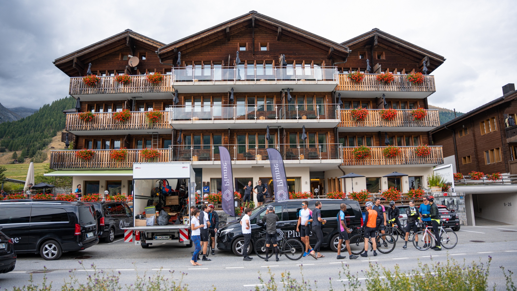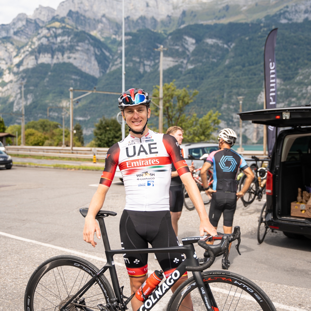 Fotografiranje na kolesarskem izletu za dober namen. Kolesarjenje je potekalo že 2. leto zapored, tokrat samo po Švici. Na prvi etapi se nam je pridružil tudi Tadej Pogačar.