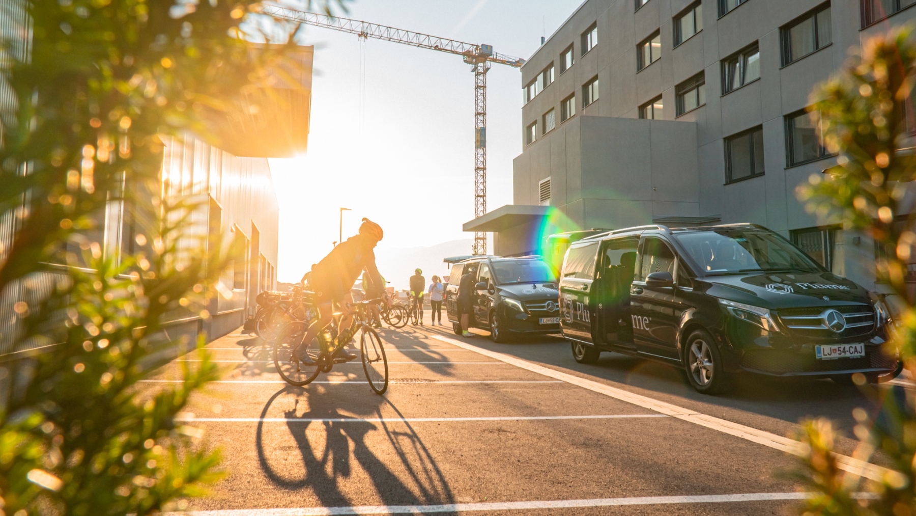 Fotografiranje na kolesarskem dogodku podjetja Plume. Zaposleni so za dober namem kolesarili iz Zuricha do Ljubljane.